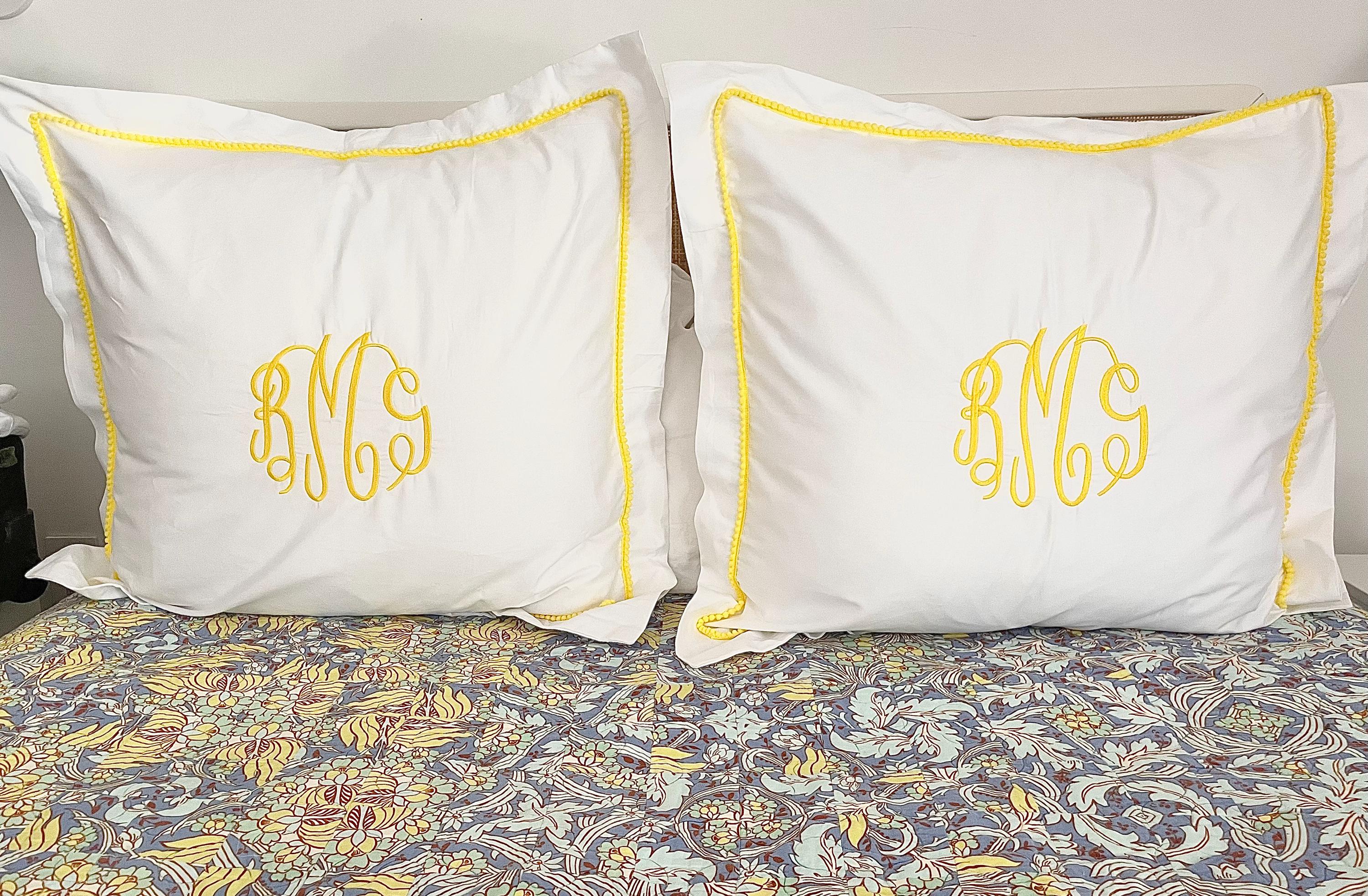 The mini pom pom trim creates an elegant border to an Egyptian cotton sham and frames a pretty monogram. This sham will go a long way towards transforming your bedroom into a luxurious oasis.
