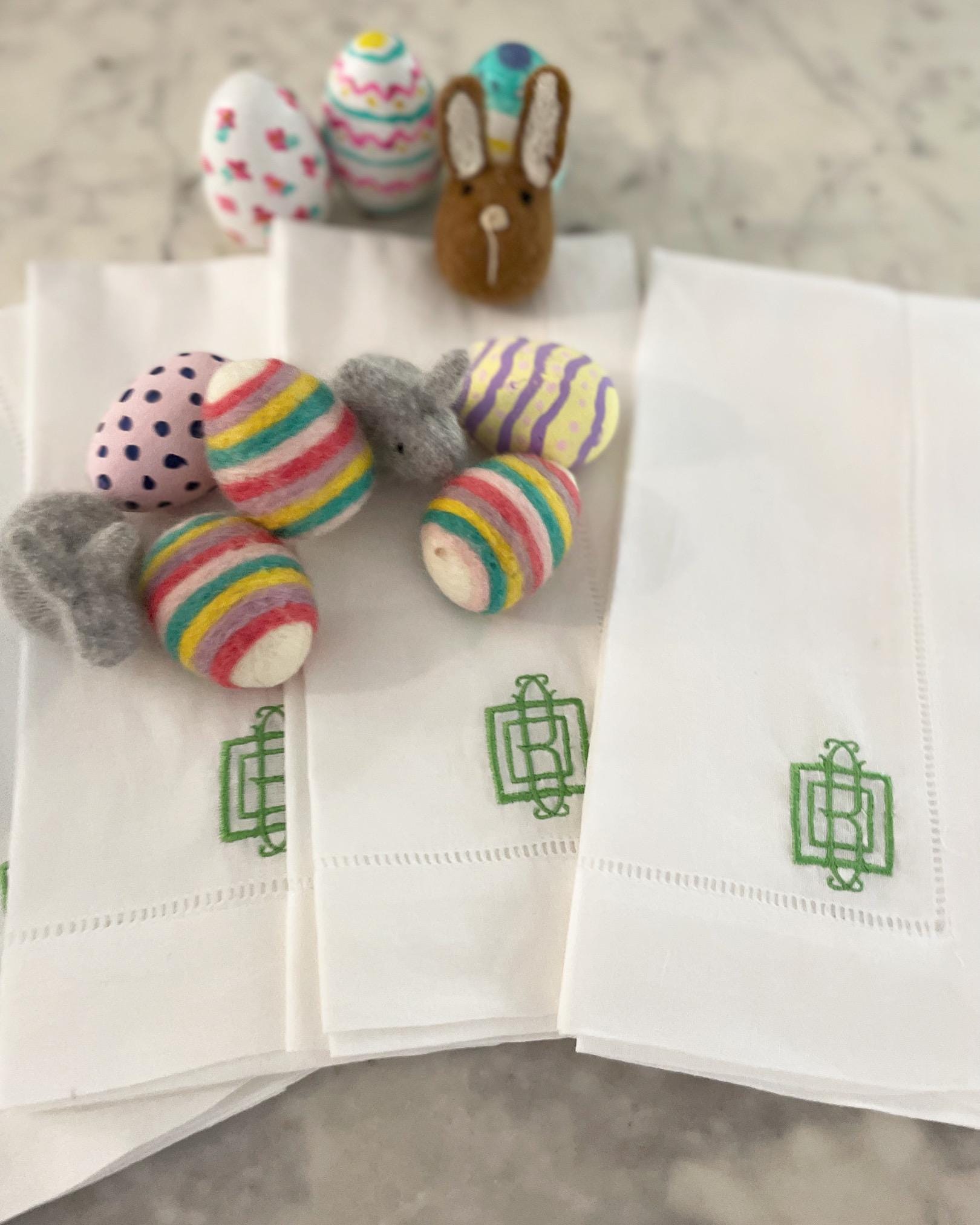 These lovely monogrammed dinner napkins are a true classic adorned with a pretty hemstitch. They are great for entertaining or to give as a wedding or engagement gift to that new couple.